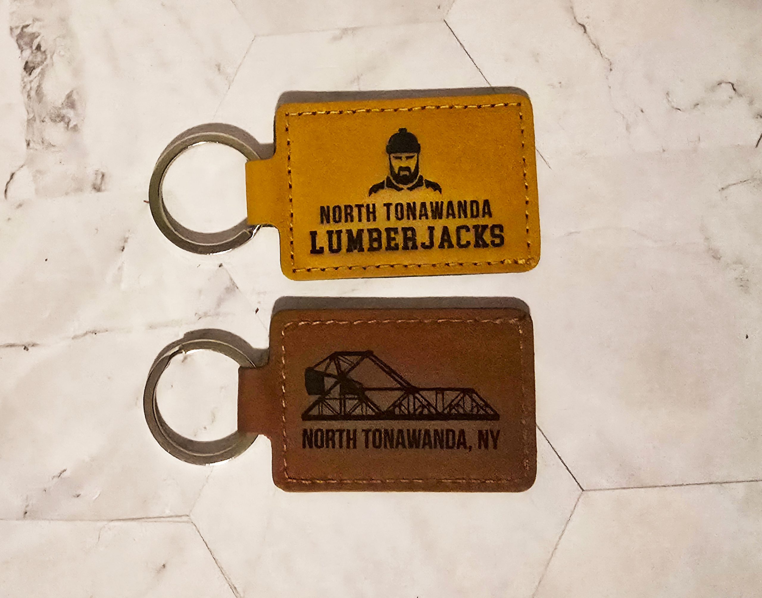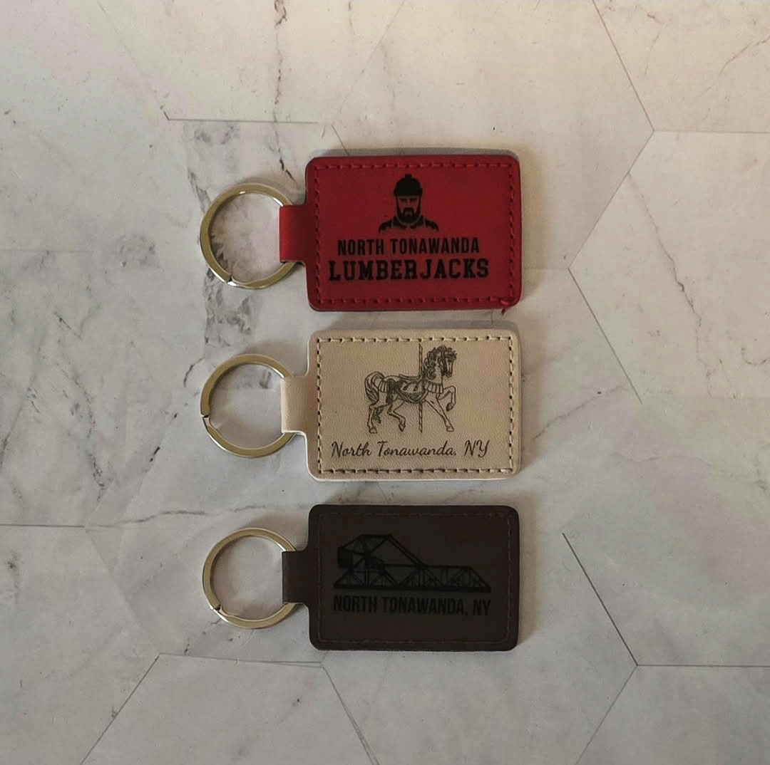 North Tonawanda Leather Keychain. Measures 2.5″ x 1.5″. Red, White and Dark Brown are currently out of stock.